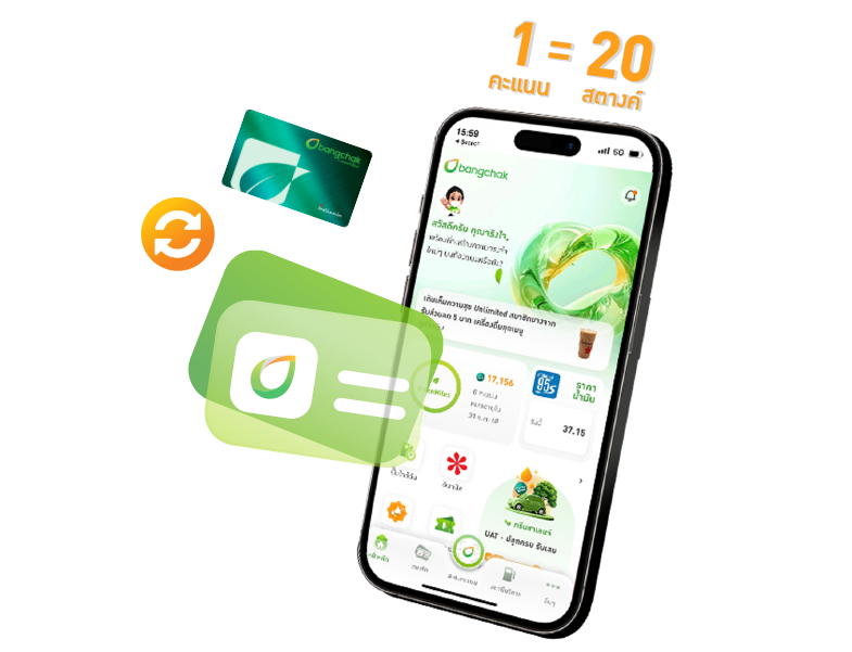 รับคะแนนสะสม เมื่อใช้บริการที่สถานีบริการน้ำมันบางจากร้านค้าในเครือบางจาก หรือร้านค้าที่ร่วมรายการ