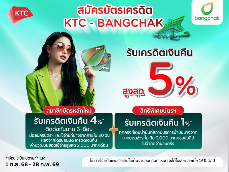 สมัครบัตรเครดิต KTC - BANGCHAK รับเครดิตเงินคืนรวมสูงสุด 5%