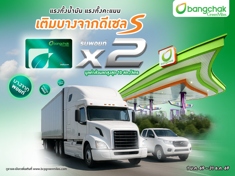 แรงทั้งน้ำมัน แรงทั้งคะแนน! สมาชิกบางจากกรีนไมลส์ เติมบางจากดีเซล รับพอยท์ X2