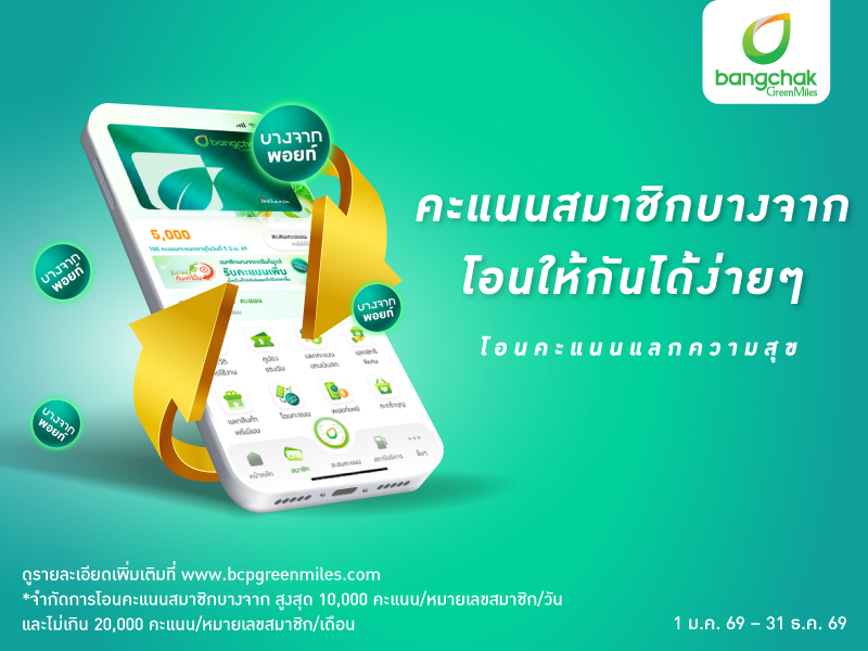 คะแนนสมาชิกบางจากกรีนไมลส์ โอนให้กันง่ายๆ โอนคะแนนแลกความสุข