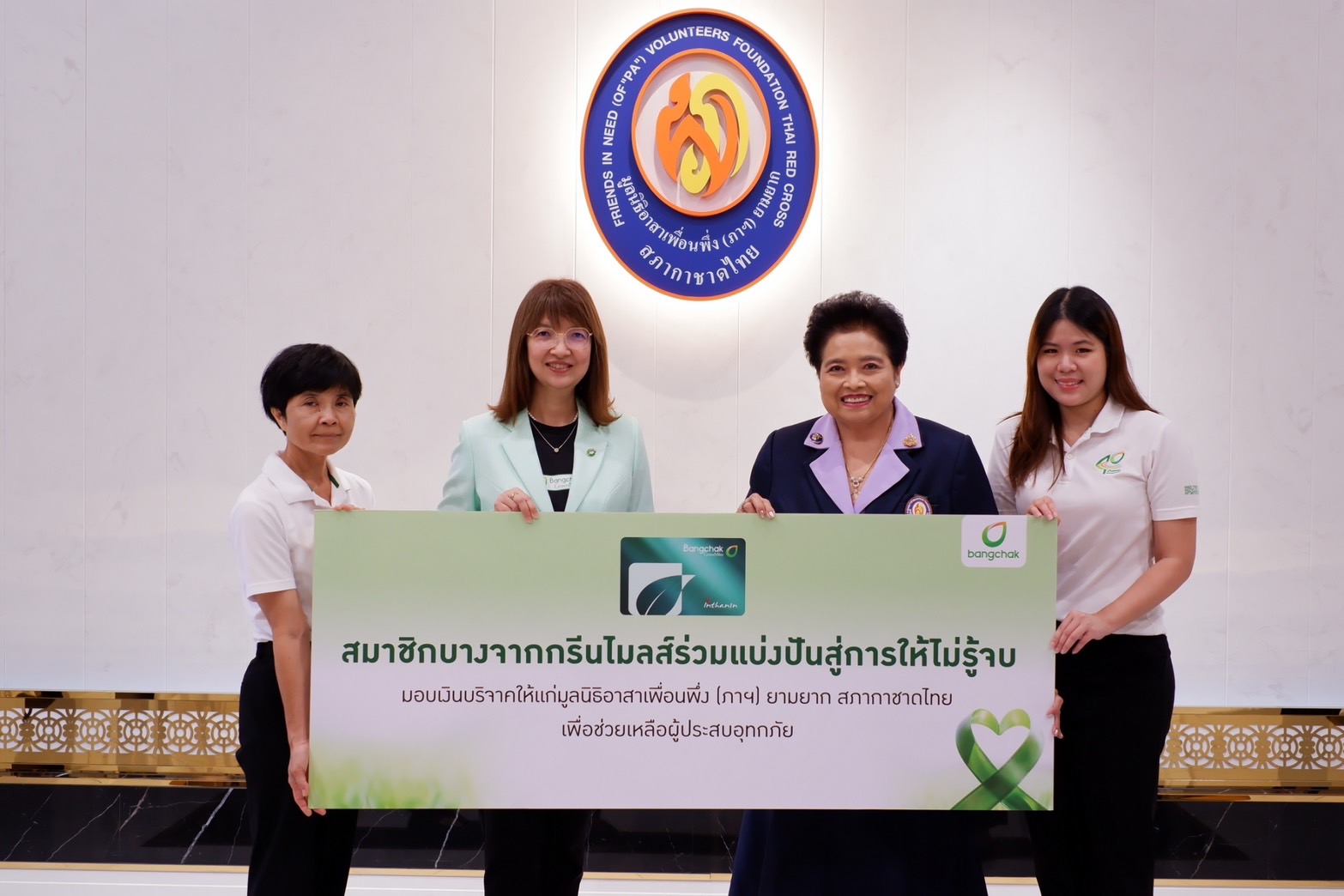 นางสาวพรทิพา ตัณฑากาศ ผู้อำนวยการฝ่ายสื่อสารการตลาด บริษัท บางจาก คอร์ปอเรชั่น จำกัด (มหาชน) เป็นตัวแทนสมาชิกบางจากกรีนไมลส์ มอบเงินจากการบริจาคคะแนนสะสมที่สมาชิกได้รับจากการเติมน้ำมันและซื้อสินค้าในกลุ่มบริษัทบางจาก ระหว่างวันที่ 13 กันยายน 2567 - 1 ตุลาคม 2567  รวมเป็นเงินทั้งสิ้น 106,078.20 บาท ให้แก่มูลนิธิอาสาเพื่อนพึ่ง (ภาฯ) ยามยาก สภากาชาดไทย เพื่อนำเงินบริจาคไปช่วยเหลือผู้ประสบภัย จัดทำถุงยังชีพ จัดตั้งโรงครัวบรรเทาทุกข์ และนำเงินไปฟื้นฟูภายในพื้นที่หลังเกิดเหตุอุทกภัย
