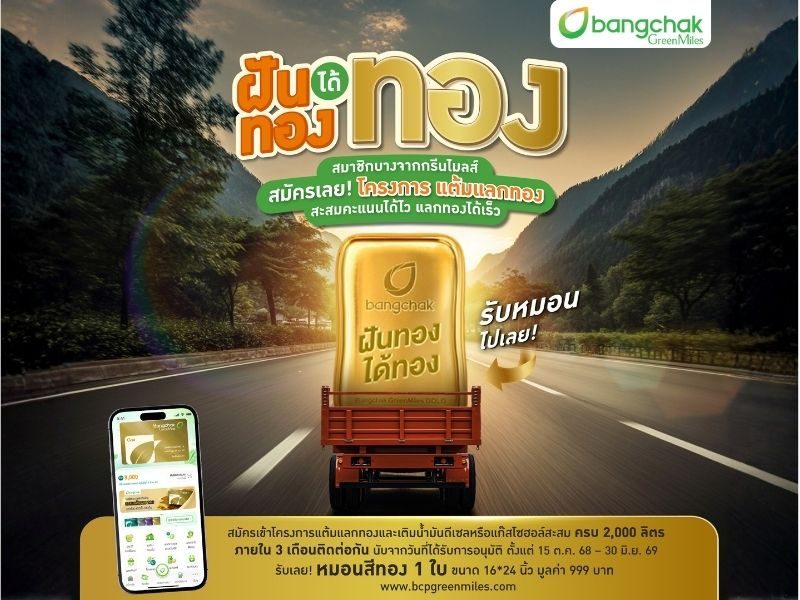 สมาชิกบางจากกรีนไมลส์ที่เข้าร่วม “โครงการแต้มแลกทอง” ตั้งแต่ 15 ต.ค. 68 – 30 มิ.ย. 69
