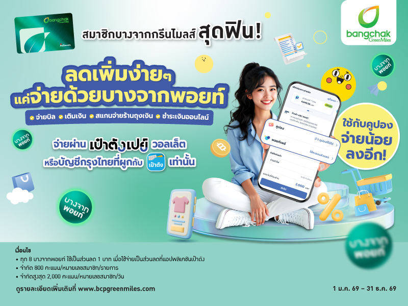 สมาชิกบางจากกรีนไมลส์ สุดฟิน!  ลดเพิ่มง่ายๆ แค่จ่ายด้วยบางจากพอยท์